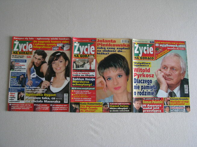 Witam, Sprzedam 3 egzemplarze archiwalnych wydań tygodnika Życie na gorąco z lat 2003 i 2006, w formacie 23 x 29 cm, ...