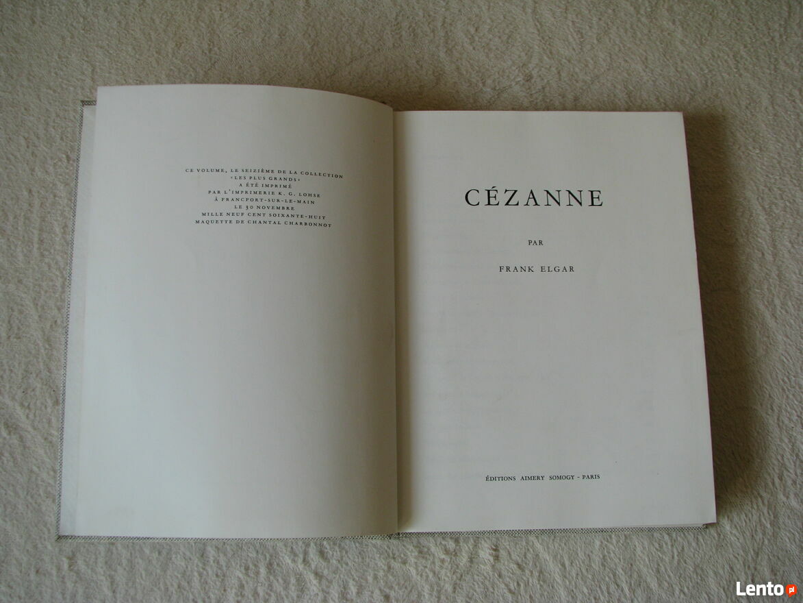 Witam,Sprzedam pięknie wydaną książkę autorstwa Franka Elgart „Cezanne. L'homme et son oeuvre”, wydaną w 1968 r. przez wydawnictwo Aimery Somogy. Wydanie francuskojęzyczne.