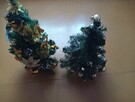 Choinki małe sztuczne na stojakach sprzedam dwie sztuki tak jak widać jakieś ozdoby bombki jedna około 60 cm a druga 76 ...