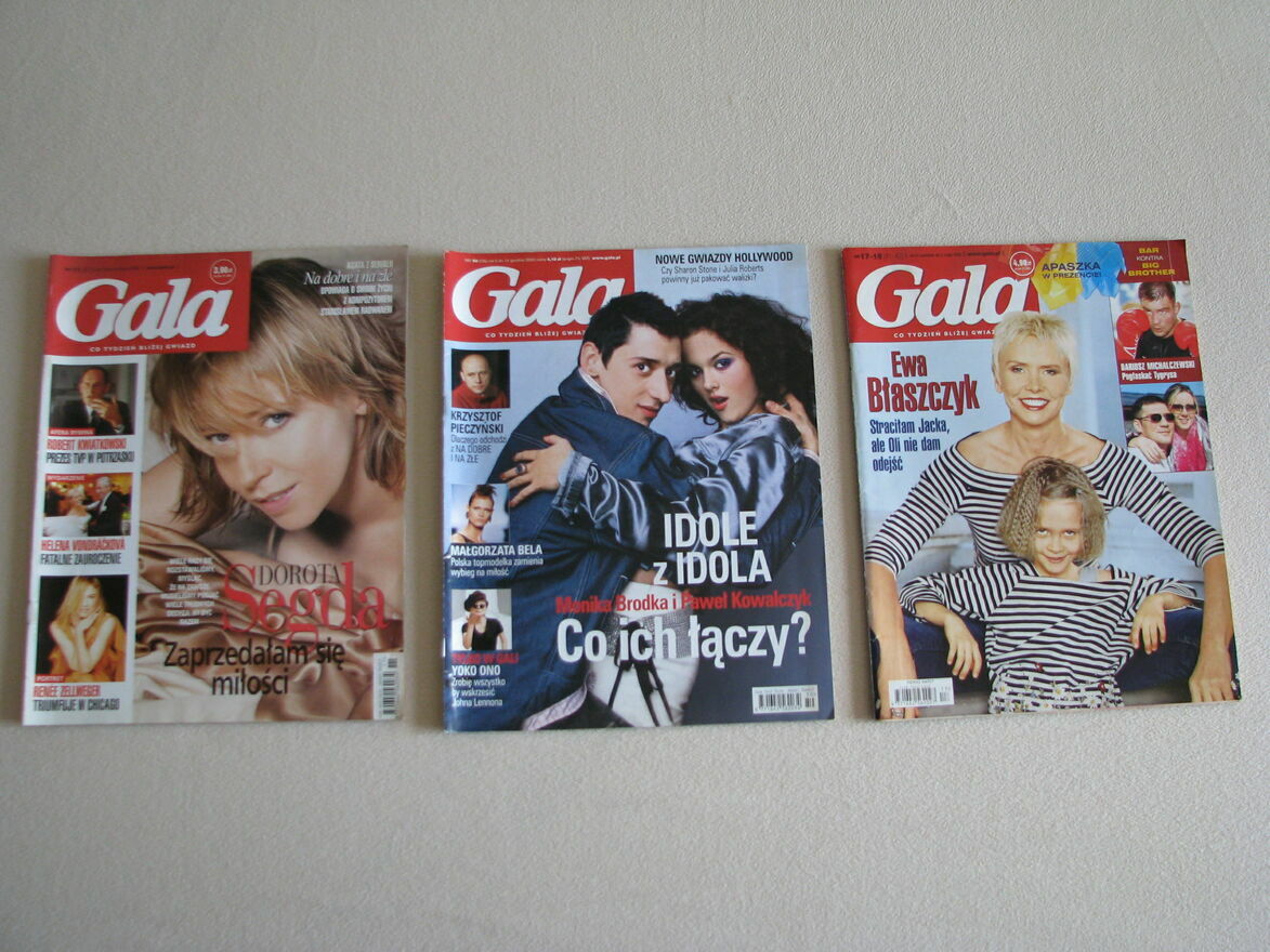 Witam,Sprzedam 3 archiwalne wydania dwutygodnika Gala z lat 2002 – 2003.