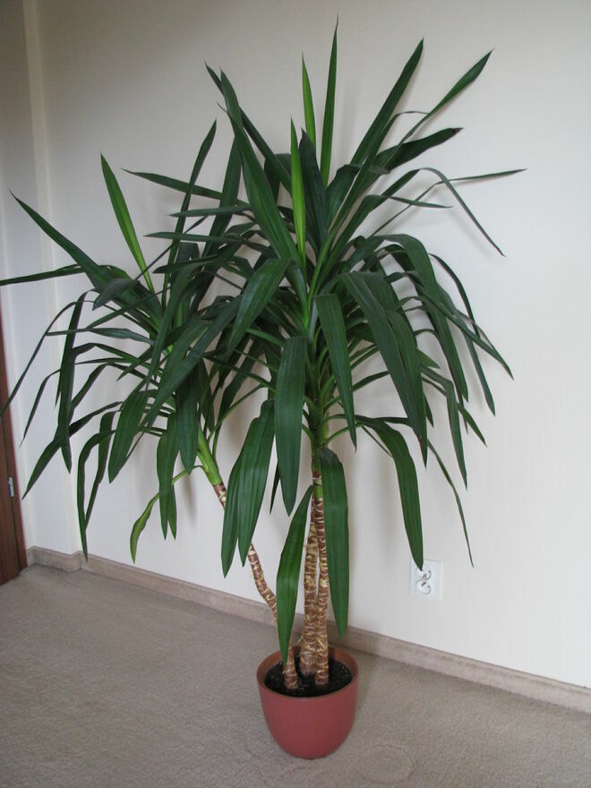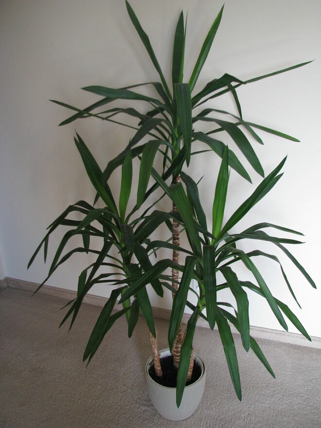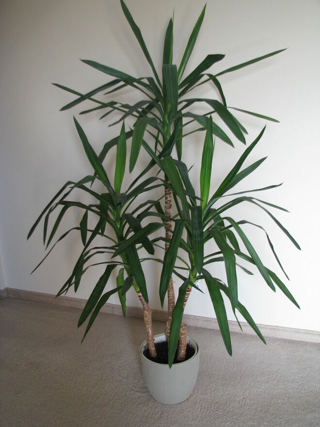 Witam,Sprzedam jukę – trzy-pienny zielony kwiat doniczkowy o wysokości ok. 160 cm z 3 wierzchołkami gęstego pióropusza dekoracyjnych liści.