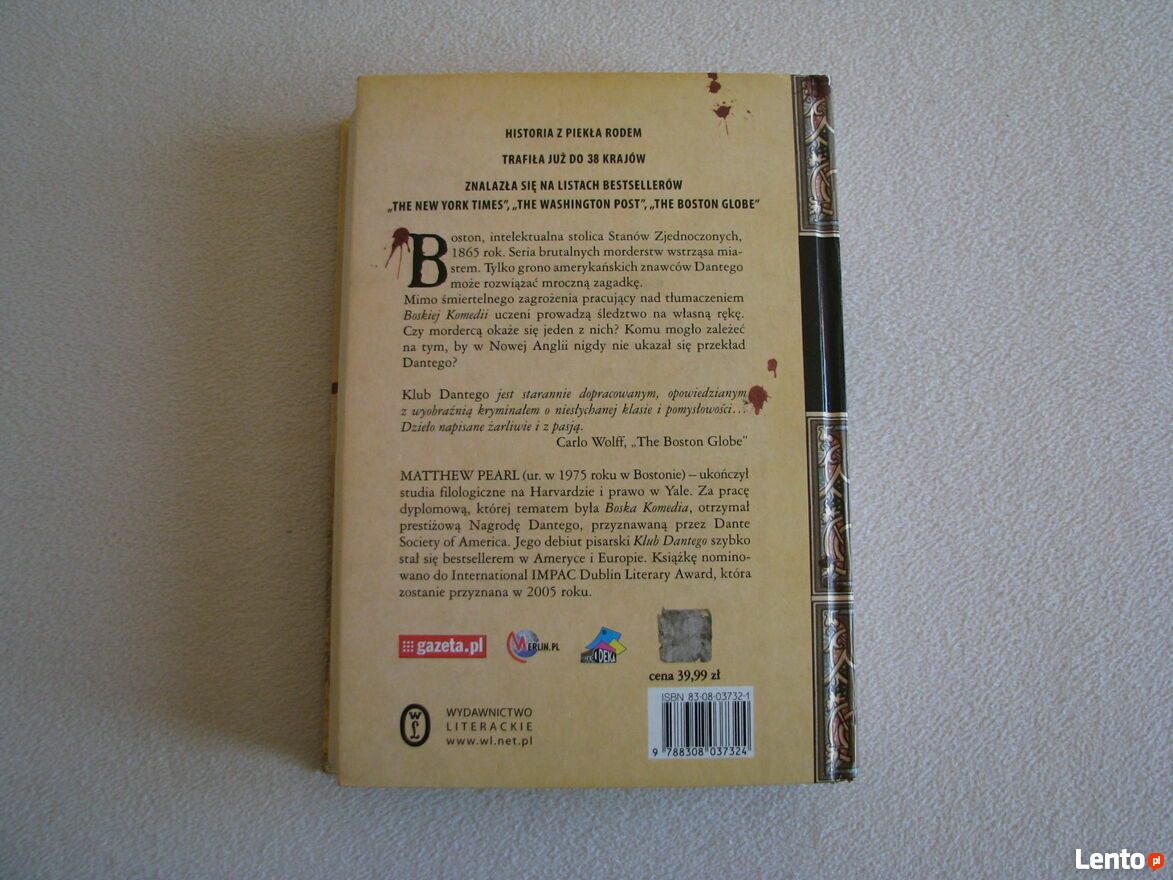 Witam,Sprzedam książkę autorstwa Matthew Pearl „Klub Dantego”, wydaną w 2005 r przez Wydawnictwo Literackie Kraków.