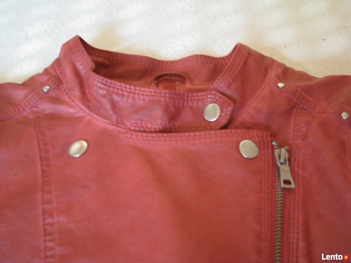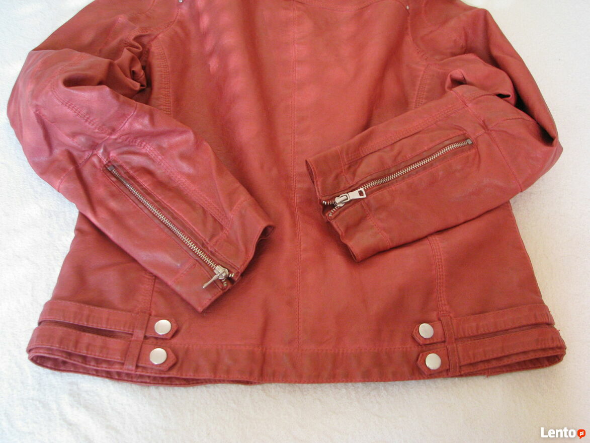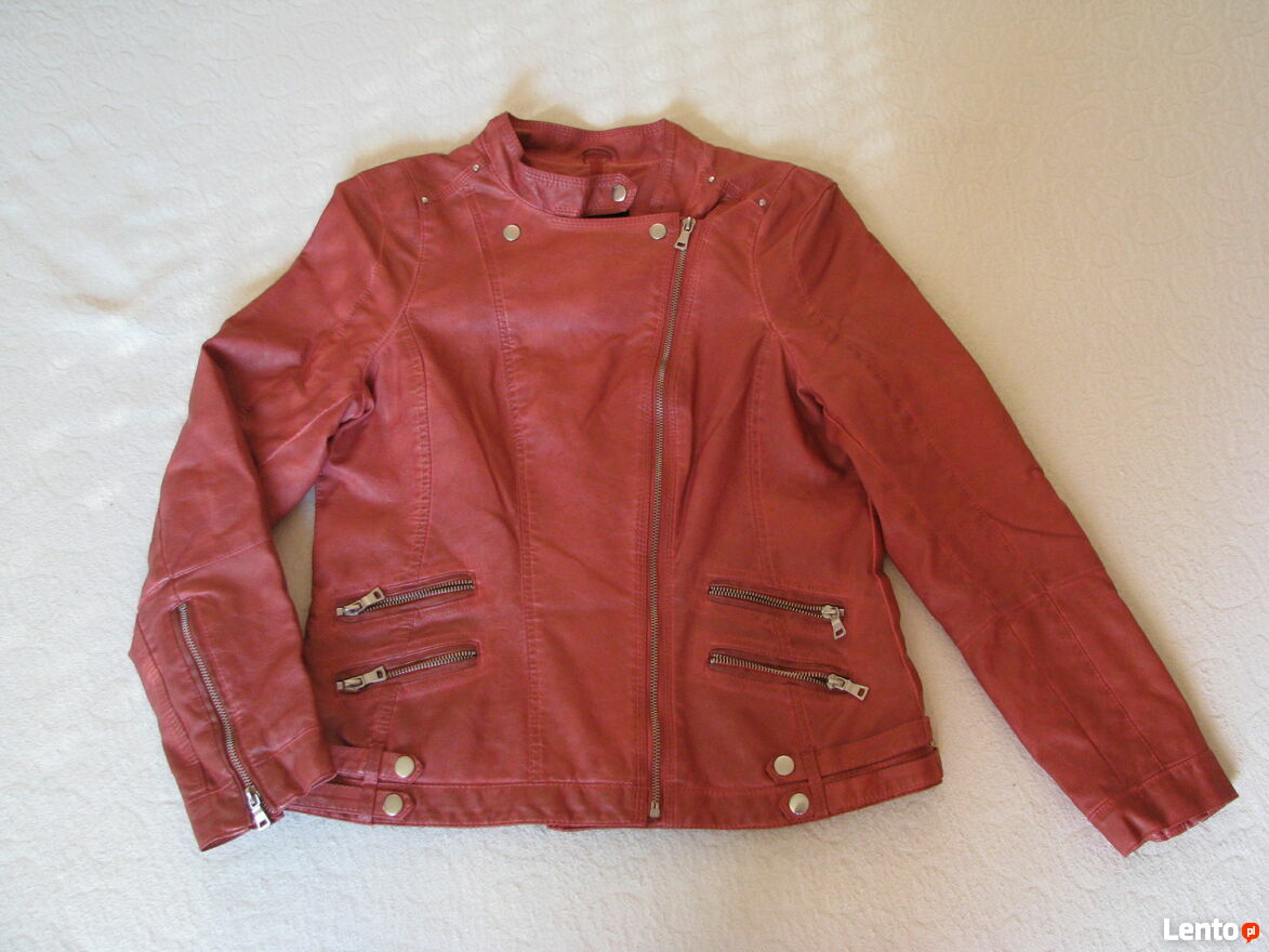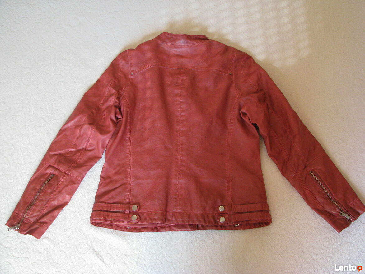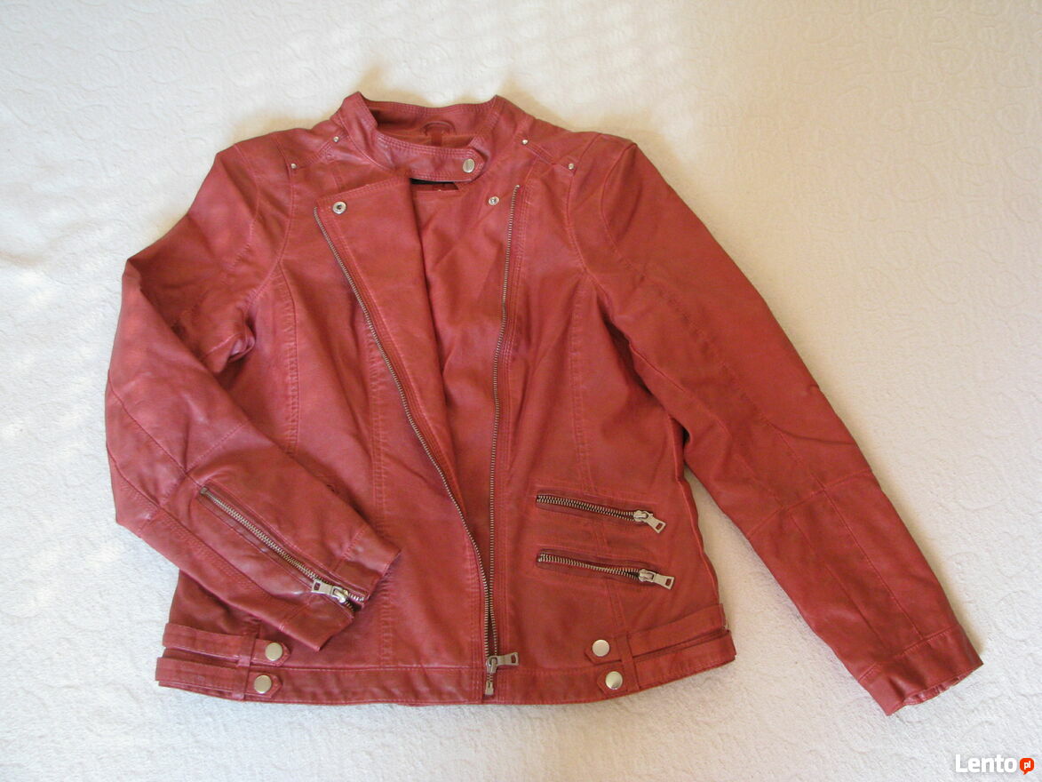 Witam,Sprzedam damską kurtkę przejściową typu ramoneska w rozmiarze 42 w oryginalnym kolorze stłumionej czerwieni.