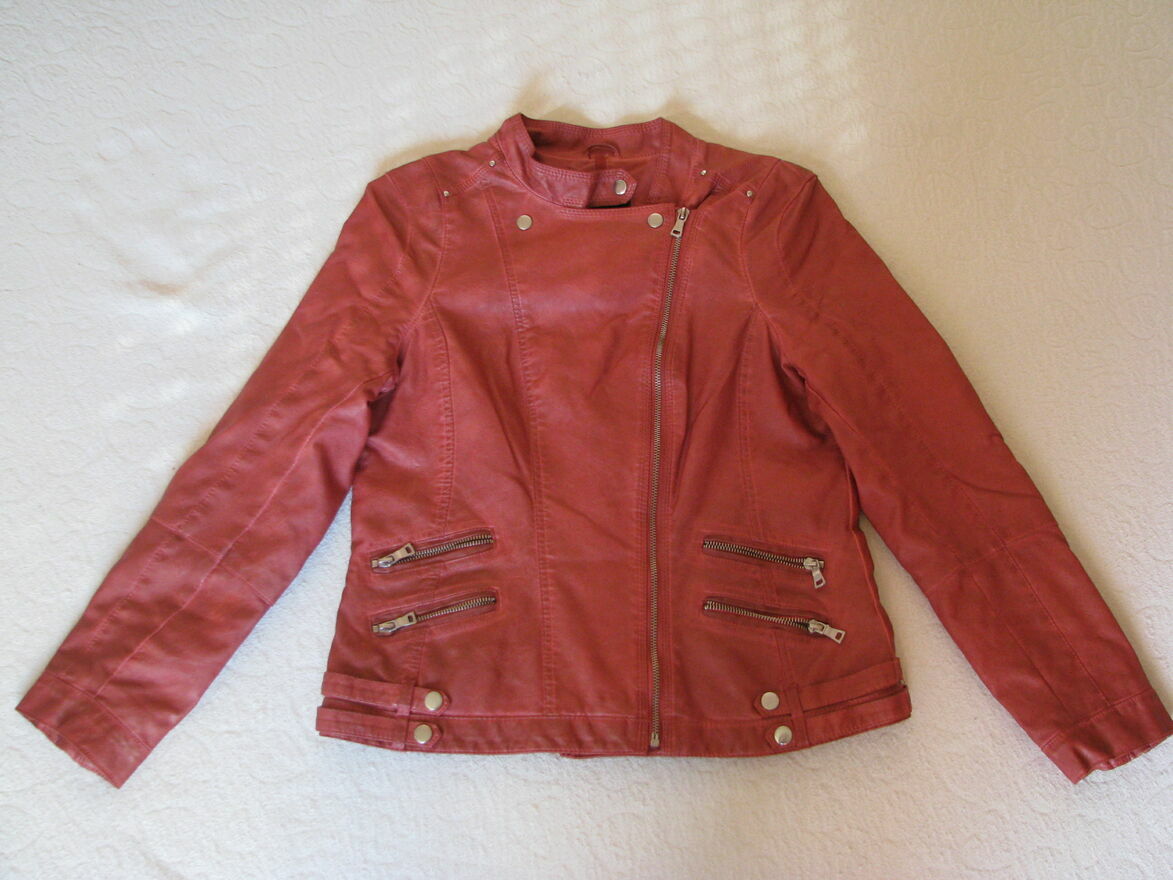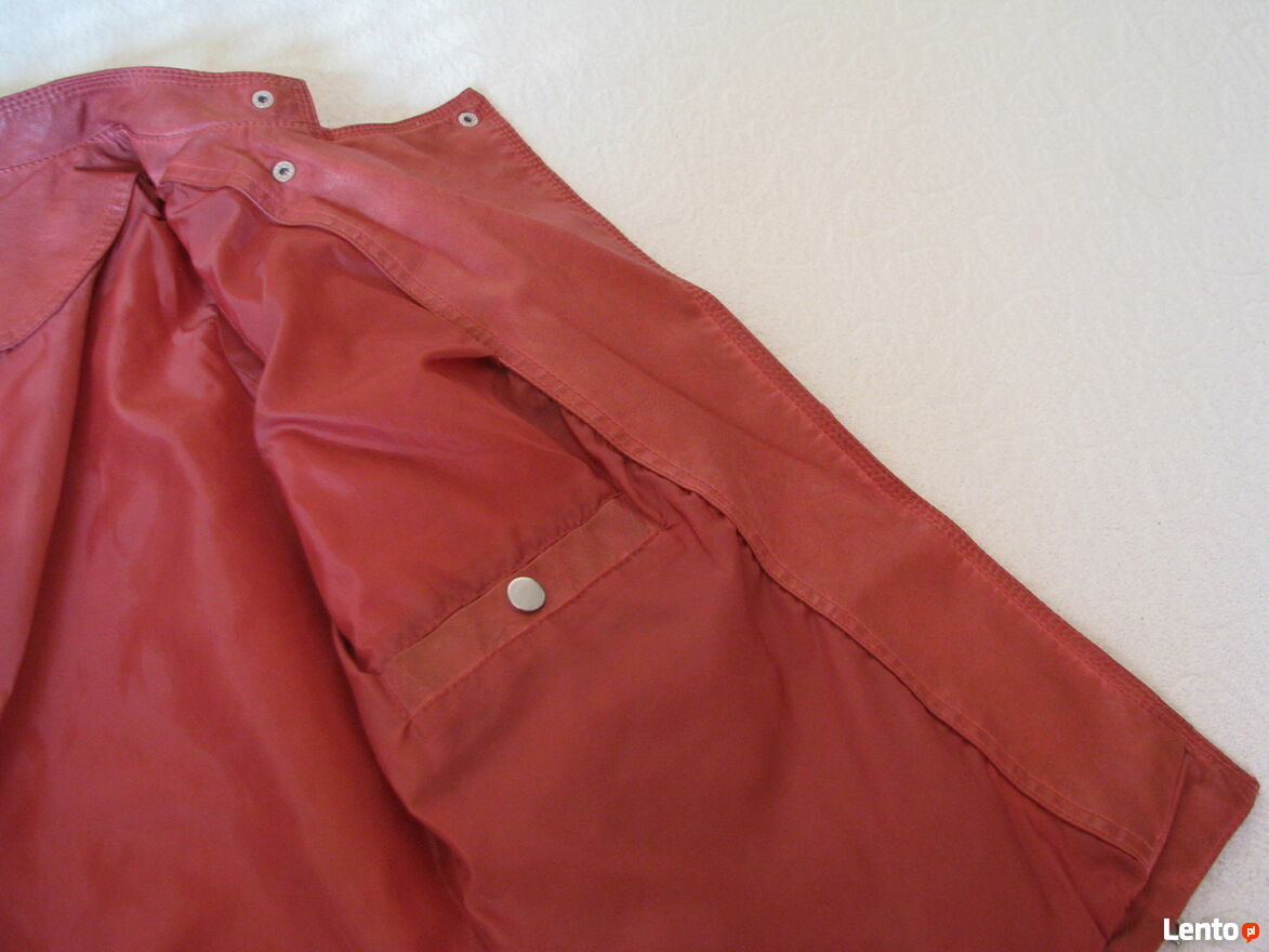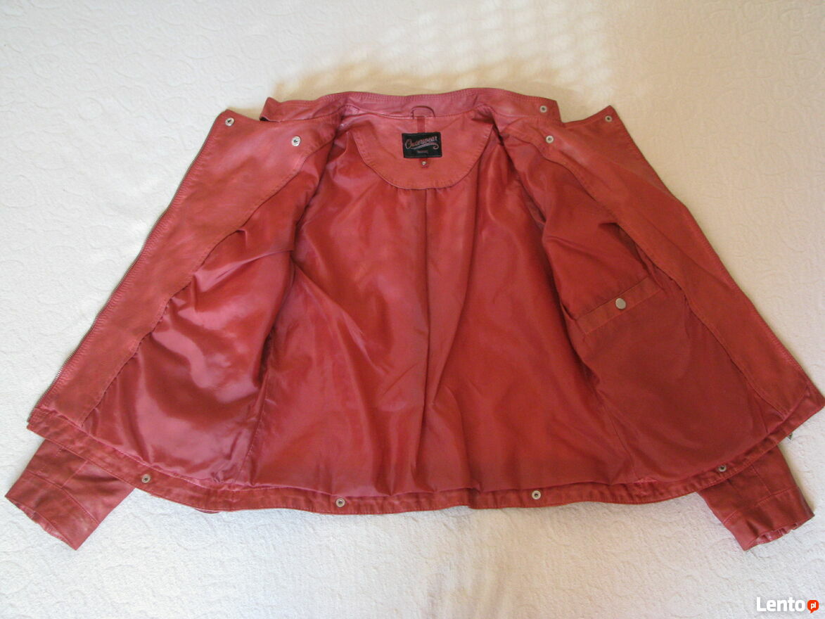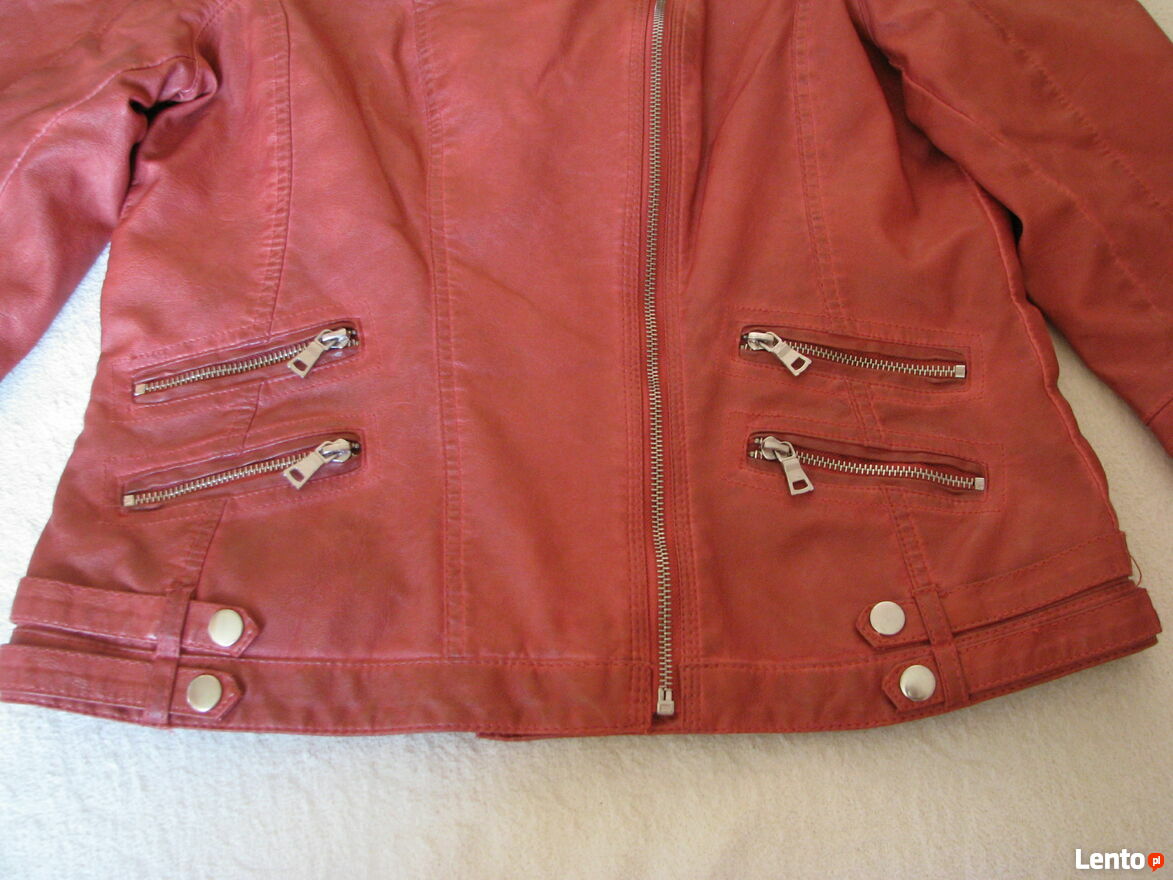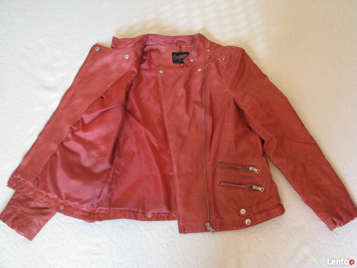 Witam,Sprzedam damską kurtkę przejściową typu ramoneska w rozmiarze 42 w oryginalnym kolorze stłumionej czerwieni.