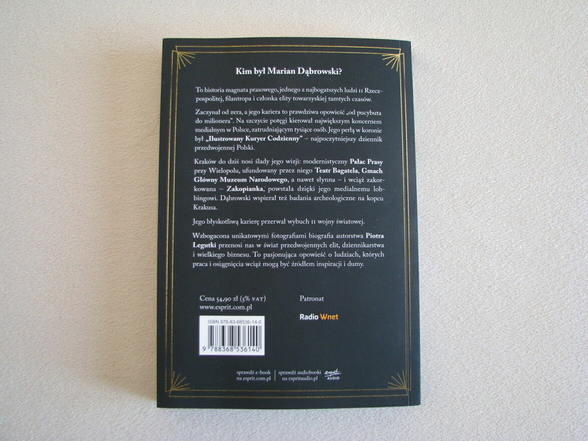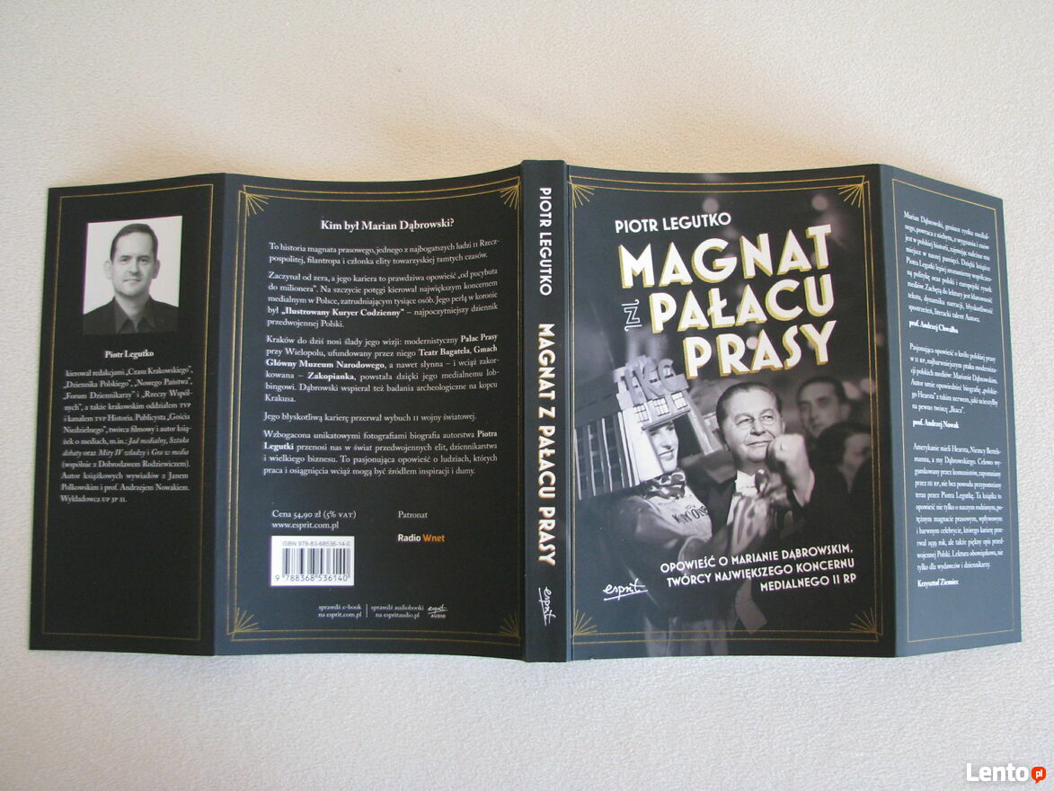 Witam,Sprzedam książkę Piotra Legutko „Magnat z pałacu prasy. Opowieść o Marianie Dąbrowskim, twórcy największego koncernu medialnego II RP”, wydaną w 2025 r. przez Wydawnictwo Esprit.