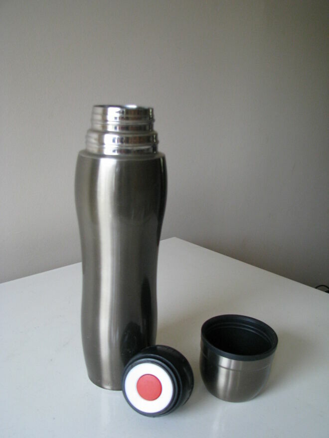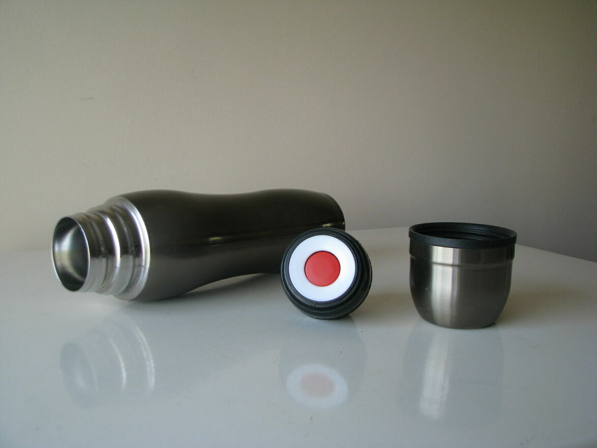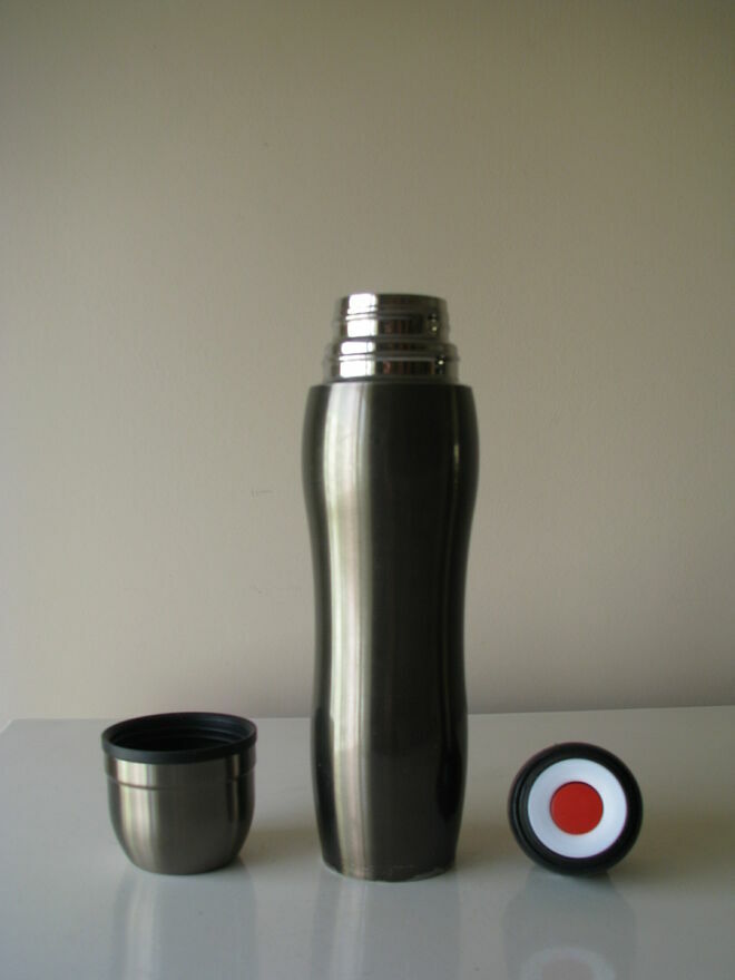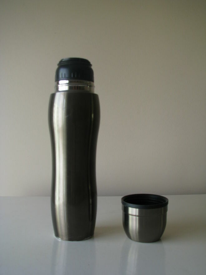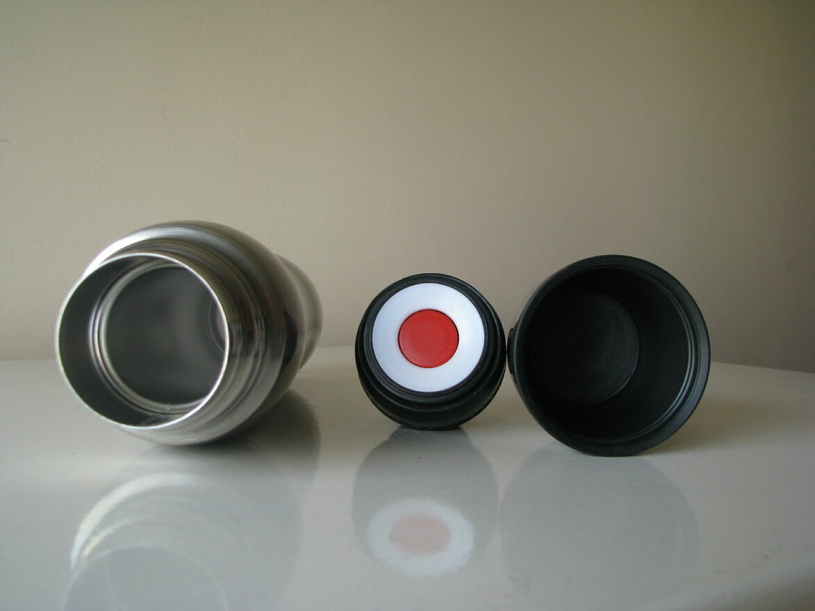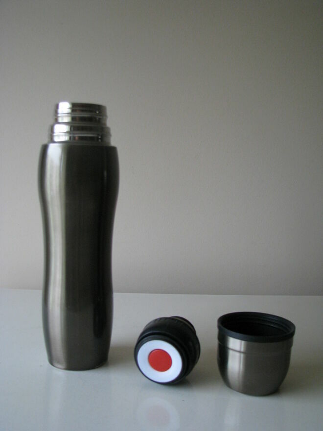 Termos wyposażony jest w mały kubeczek, który nakręcany jest u góry, tworząc spójną całość i nie ma potrzeby noszenia ze sobą dodatkowych naczyń. Od wewnątrz kubek pokryty jest plastikiem.