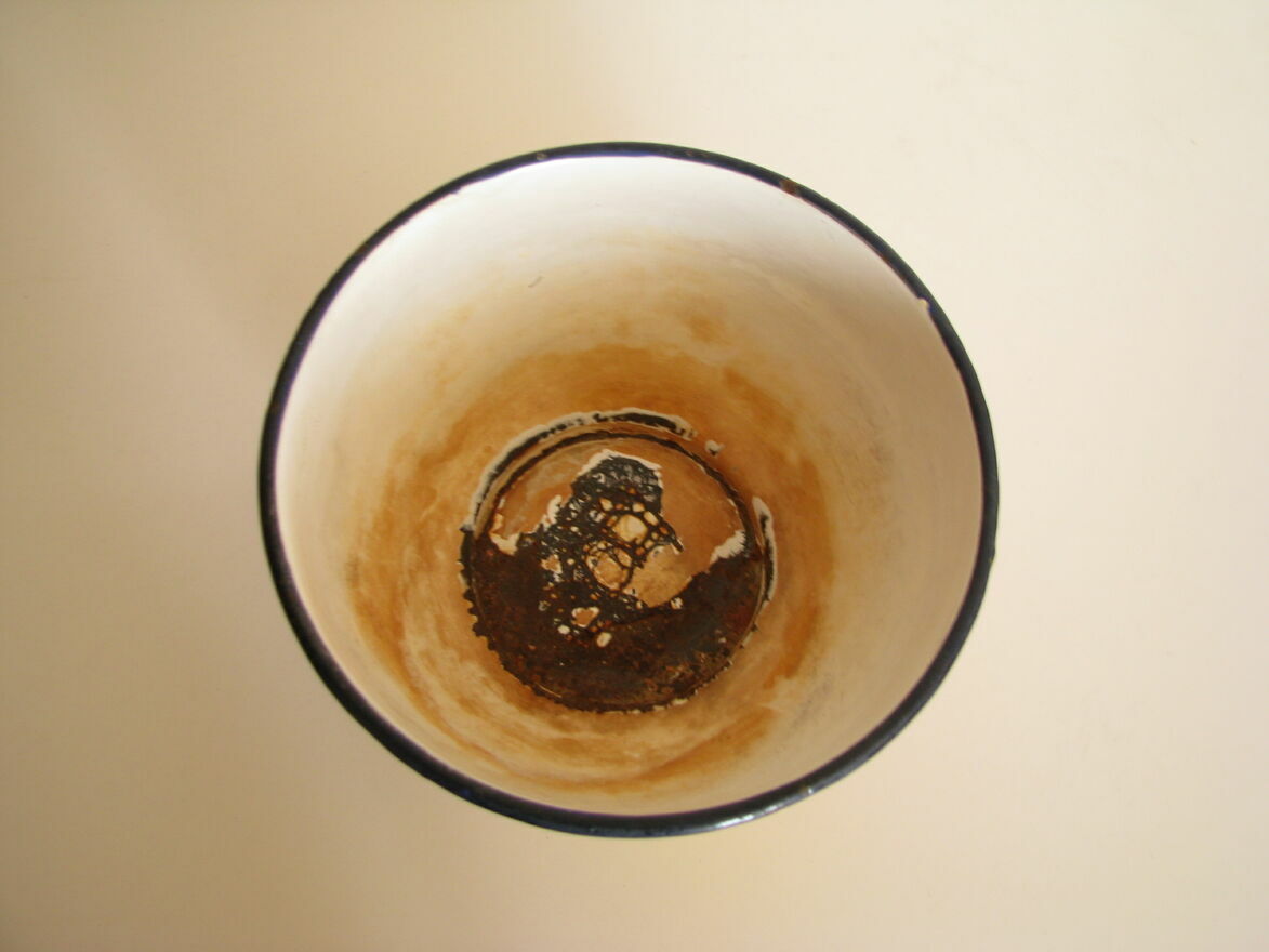 Z racji na swój wiek, jej czasy użytkowe jako naczynie kuchenne już dawno minęły, ostatnio wykorzystywana była jako dodatek dekoracyjny. Miska jest nadgryziona zębem czasu, od wewnątrz ma przebarwienia a na dnie odpryski i rdzawy nalot.