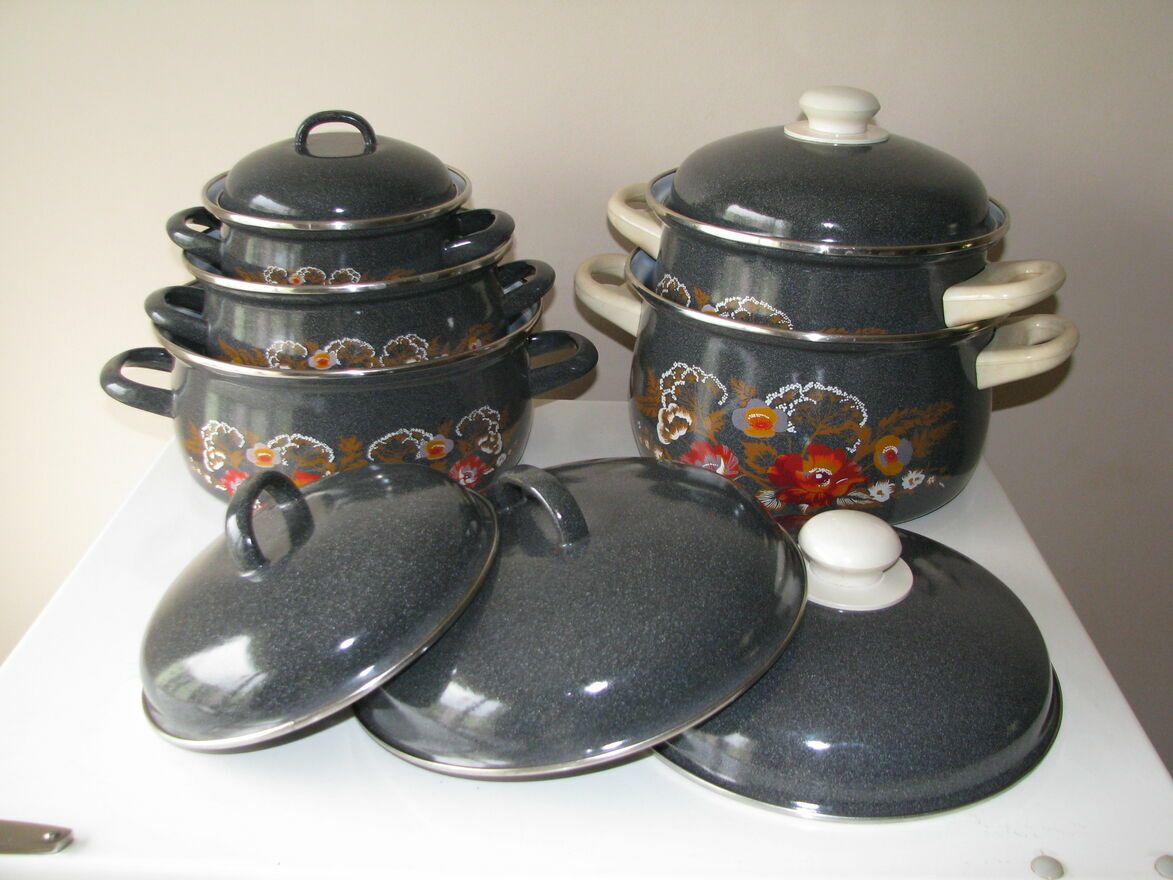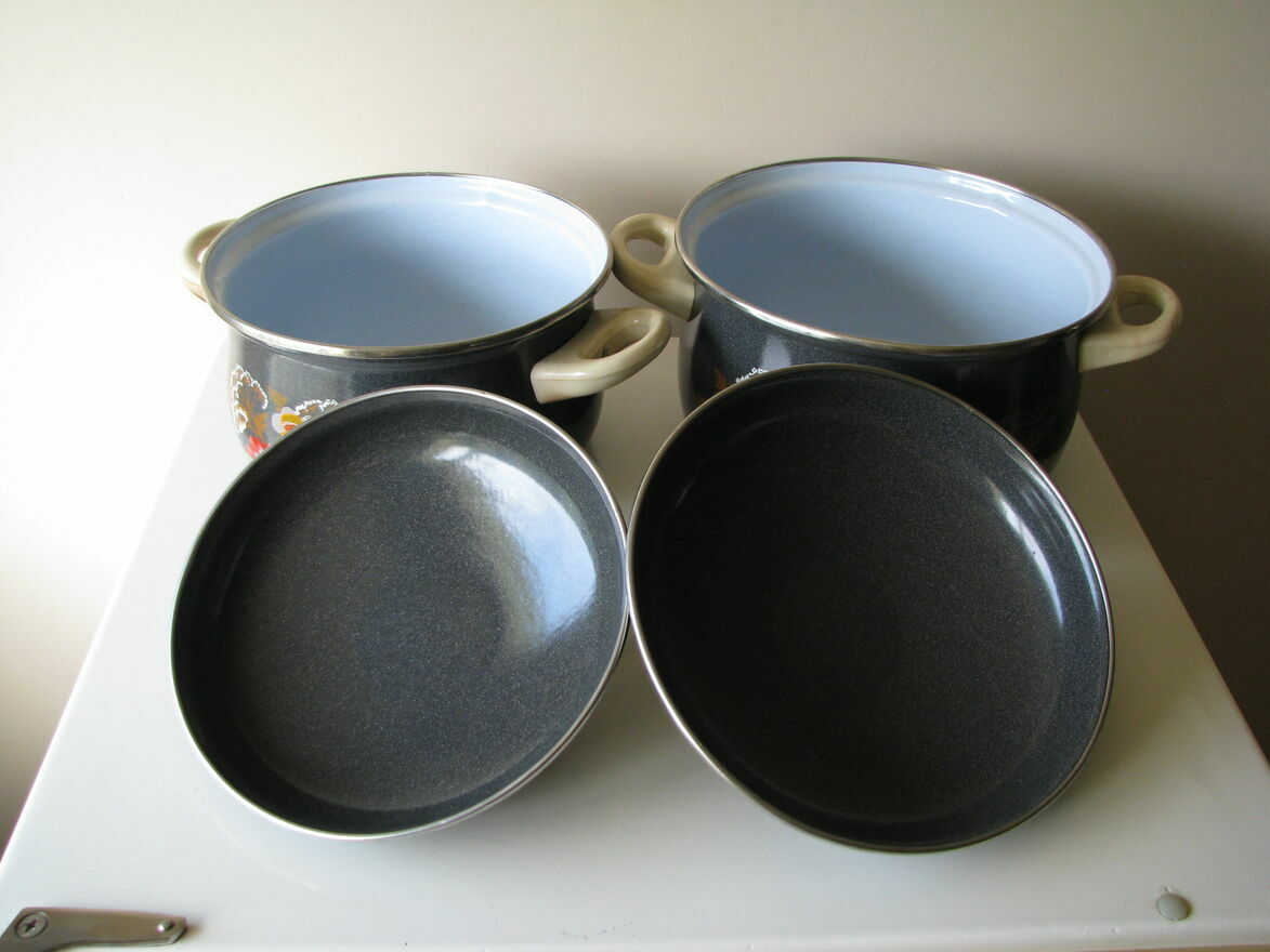 Garnki od bardzo dawna nie używane, są czyste, bez obić, w dobrym stanie i grzecznie czekają na nowego właściciela.