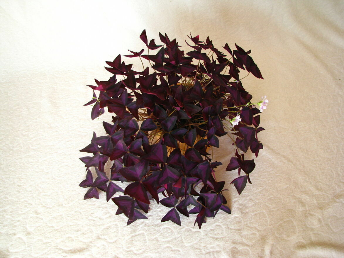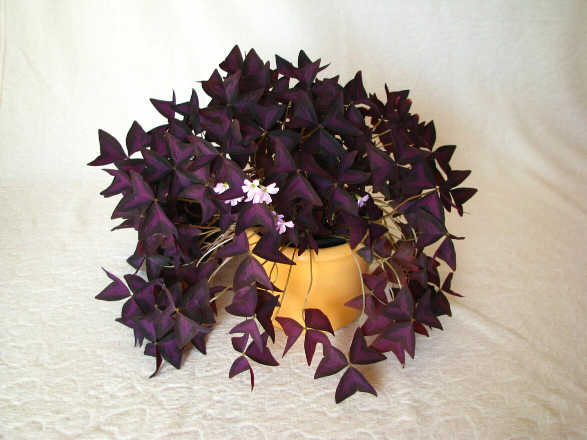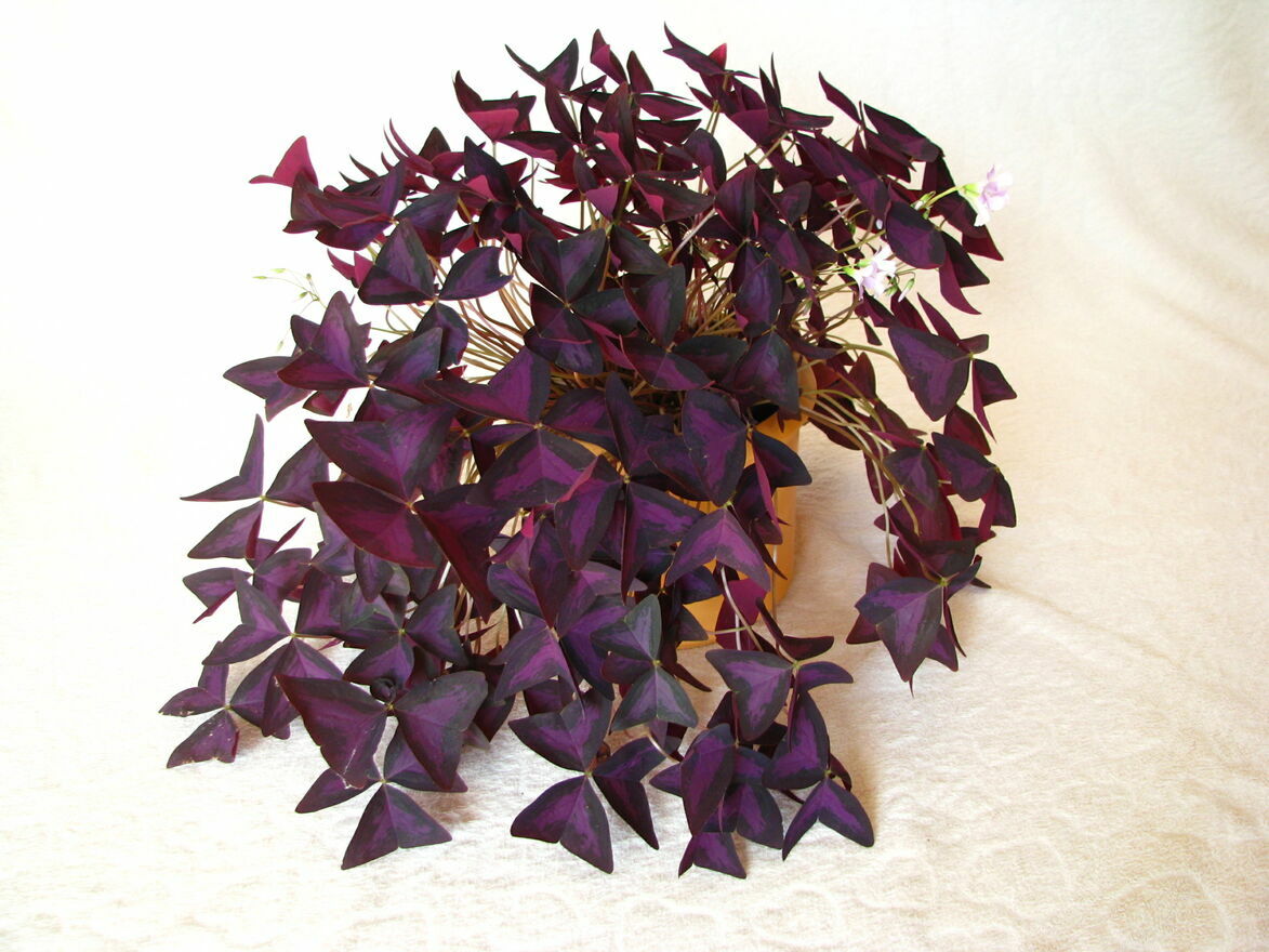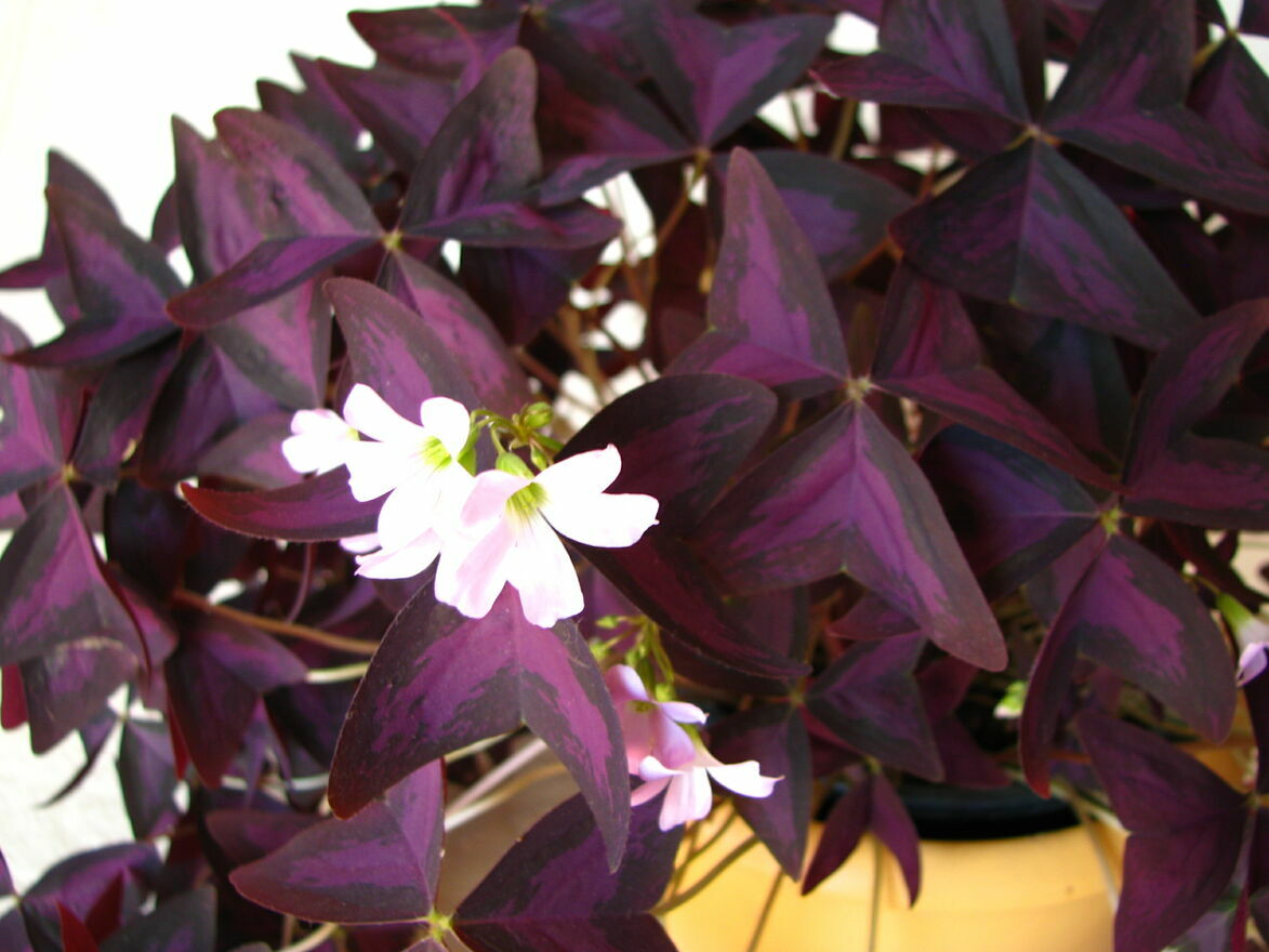 Witam,Sprzedam szczawik purpurowy (Oxalis triangularis) zwany też koniczynką szczęścia – piękny, dekoracyjny kwiat o trójkątnych fioletowo-purpurowych liściach przypominających liście koniczyny i o jasnoróżowych kwiatach.