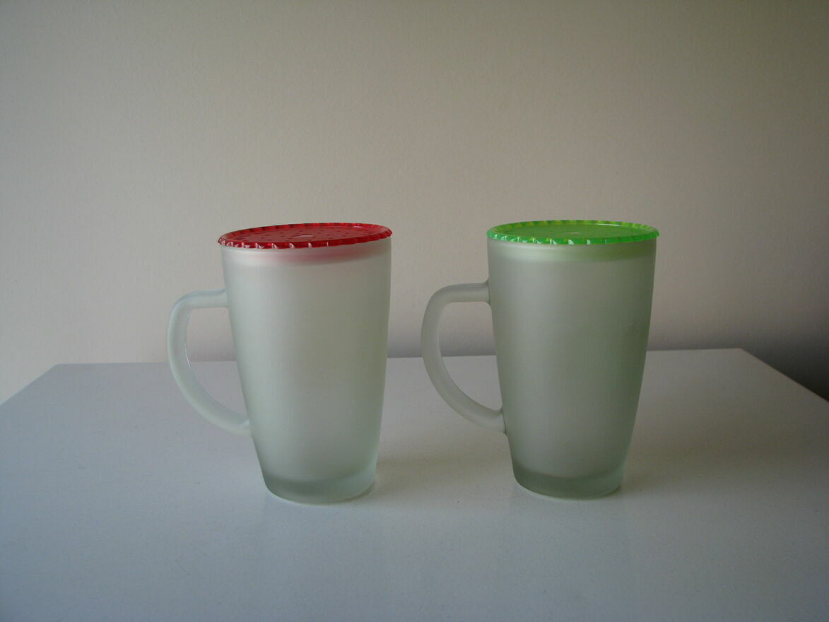 Zakochane szklanki, kubki ze szronionego szkła z pokrywką