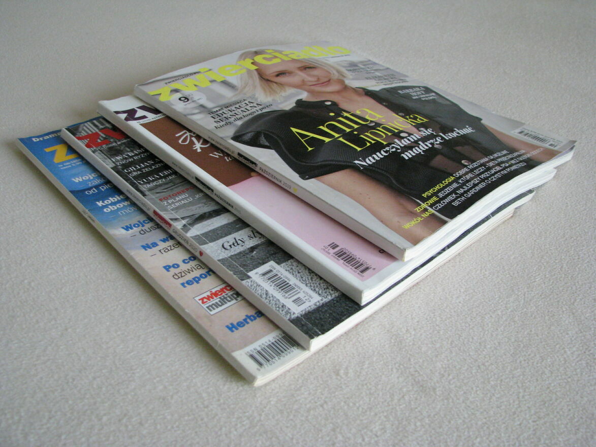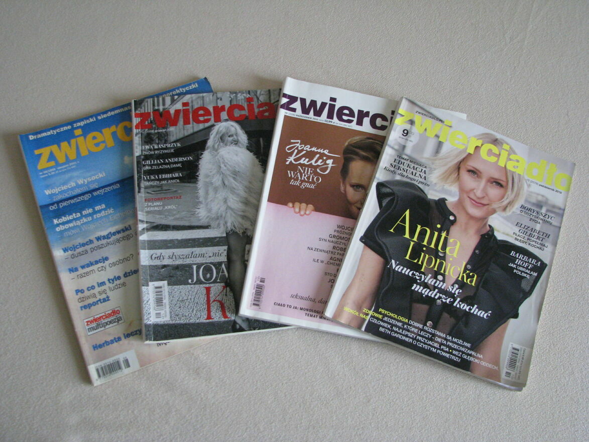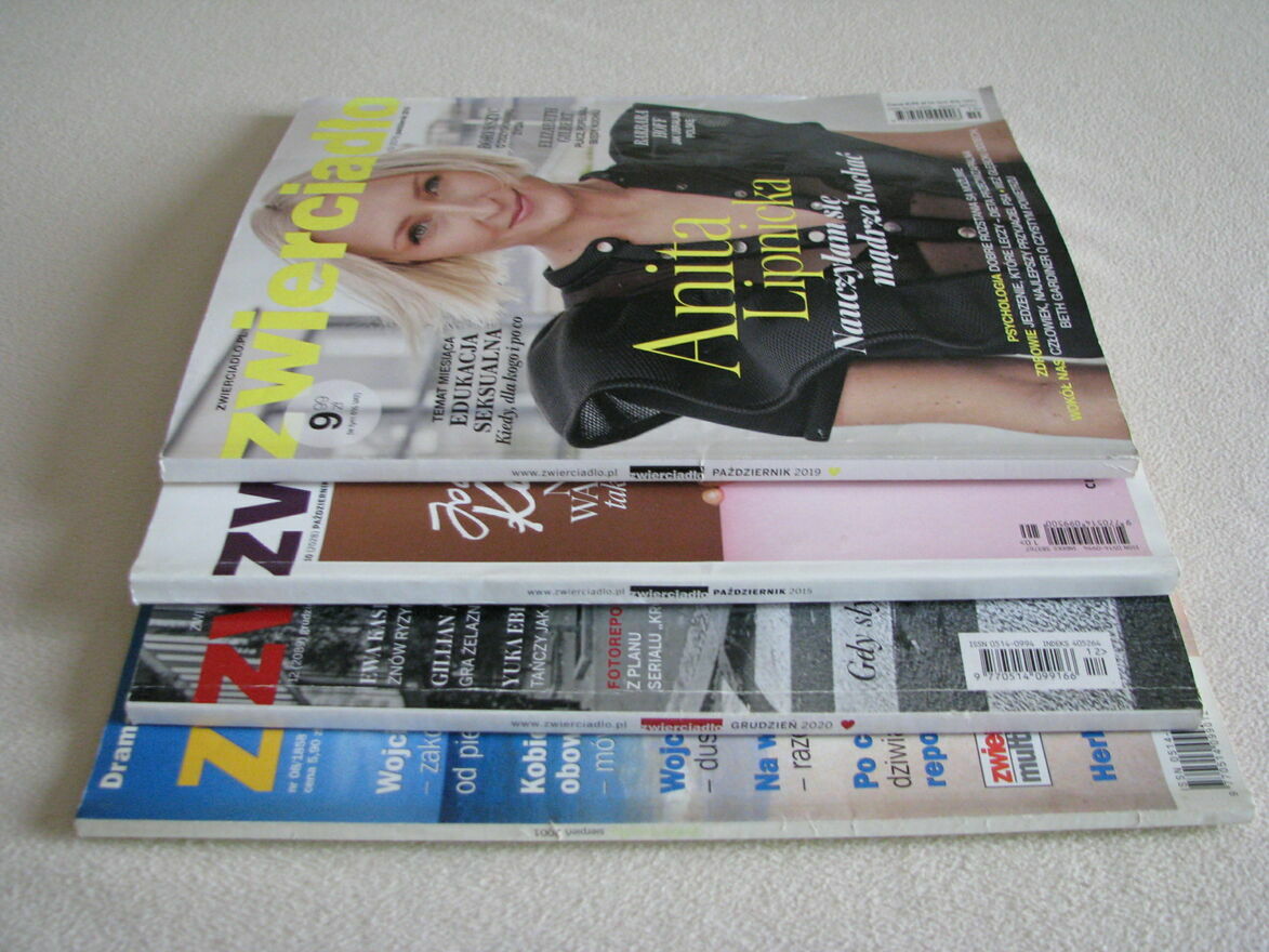 Witam,Sprzedam 4 archiwalne wydania magazynu Zwierciadło z lat 2001 – 2020 pełne ciekawostek, wywiadów, fotoreportaży i wieści ze świata. Znajdują się w nich również ciekawe artykuły o modzie, urodzie i kulturze.